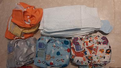 Vendo 15 pannolini lavabili, (di cui 8 marca "Bambino Mio") con relativi inserti in spugna aggiunti, più 6 inserti in spugna nuovi.