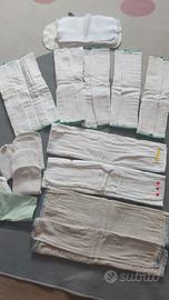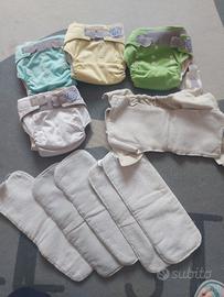 Il prezzo non è per l'intero stock! - Set new born, con cover, snappy, mussole 50×50 --> 50€ - set 10 mussole disana 80x80, solo lavate, cotone biologico --> 25€ - set 15 pannolini pop-in, alcuni con elastico allentato ma ancora utilizzabili, con inserti booster --> 50€ - set 5 kinkilia, completi di inserti, utilizzabili come ai2 o pocket --> 25€ - set prefold varie misure, inserti cotone ecc --> 15€ Accetto proposte per intero stock o più set