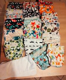 Vendo 29 pannolini lavabili di varie marche (little & bloomz - miosolo - mamma ecologica) tutti con rispettive imbottiture in microfibra molto assorbenti. Come potete vedere da foto alcuni hanno chiusura a bottone altri a strap, tenuti tutti molto bene, usati solo x 4 mesi. 6 imbottiture extra, mesh bag miosolo + mio liners X quando sono più grandicelli x raccolta "solido". Solo 2 sono macchiati (non ho provato a lavarli ad alte temperature con smacchiatore ecc). Prezzo trattabile.