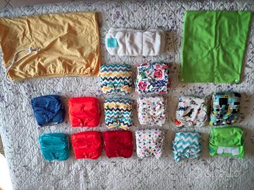 Vendo 13 pannolini lavabili e regolabili compresi inserti e 2 sacche per il trasporto.