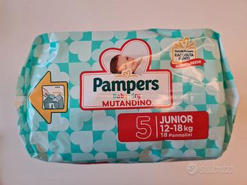 Vendo n. 4 pacchi pannolini Pampers Baby-dry mutandino, tg. 5 (12-18 kg). Le confezioni sono tutte integre e mai aperte.