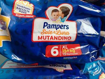 Pannolini Pampers Sole e Luna Nuovi, confezioni chiuse. 5 confezione da 13 pz, per un totale di 65 pannolini Modello mutandino, taglia 6, 15+ Kg