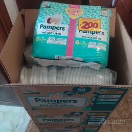 Vendo pannolini pumpers baby dry tg. 6 (15-30kg) imballati nelle confezioni originali. Vendo in blocco tot. 265, dei quali sono stati aperti solo una confezione di 28 pannolini