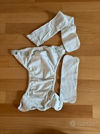 Pannolino super assorbente AIO (all in one) con Ben 2 inserti, tutto in cotone organico.ha bottoncini per regolare la vestibilità in base al peso e altezza del bimbo, sfruttabile sin dai primi mesi. Possibilità di aggiungere (costa a parte) velini assorbi pupu per maggiore protezione del culetto del bimbo. Presenta leggera usura come da foto, ma solo esternamente, quindi non compromette la funzionalità.