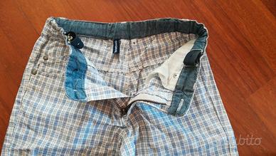 Pantaloncino corto taglia 6 anni, in puro cotone, marca Original Marines, a quadretti bianco e celeste. Elastico in vita regolabile. Larghezza vita cm 28, lunghezza cm 35. Con due tasche laterali e due tasche dietro. In ottime condizioni, utilizzati pochissimo. Euro 4.