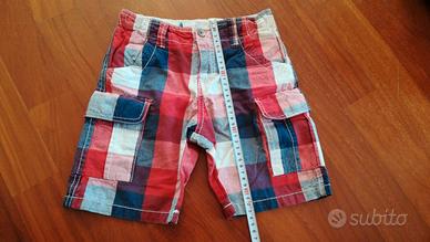 Pantaloncino corto taglia 5 anni, in puro cotone, marca Okaidi, a quadrettoni bianco, blu e rosso. Elastico in vita regolabile. Larghezza vita cm 26, lunghezza cm 33. Con due tasche laterali, due tasche dietro e due tasconi. In ottime condizioni, utilizzati pochissimo.