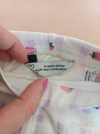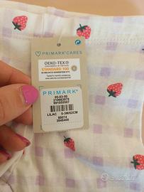 Pantaloncini neonata neonato corti bianchi con quadretti lilla e fragoline , primark taglia 0/3 mesi elasticizzati, nuovi