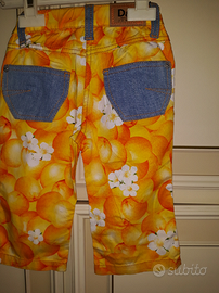 pantaloni D&G junior 12 mesi colore giallo fiori arancio 98%cotone 2% elastan passanti e tasche dietro in jeans nuovi con cartellino originali