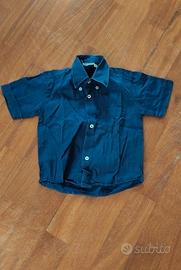 - camicetta in cotone, colore blu, in ottime condizioni, con un taschino sul davanti; misure: lunghezza cm 37, larghezza cm 31