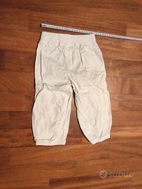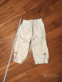 - pantalone in cotone marca Benetton, come nuovo, colore bianco, con due simpatiche "toppe" e zip laterali; misure: lunghezza cm 48, larghezza vita (con elastico) cm 21.