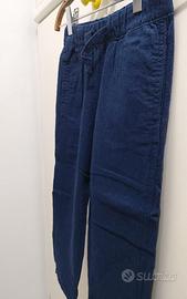 Modello: pantalone leggero in misto lino con due tasche anteriori e una posteriore, laccetto regolabile in vita.