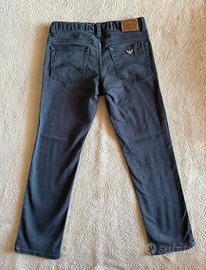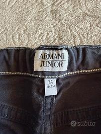 D448 Pantaloni grigi per bambino firmati Armani Junior, taglia 7 anni. - Vita elasticizzata. - Tasche anteriori. - Chiusura con bottone e zip.