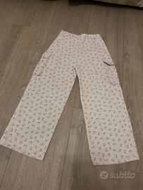 vita regolabile, chiusura con cerniera e bottone, due tasche sul davanti. Pantalone cargo lungo e ampio con motivo floreale. Taglia 152 cm. Ottimo stato.