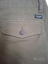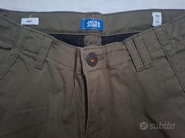Pantaloni Jack&Jones bambino, cargo con tasche laterali, taglia 13 anni 158 cm (veste 12-13 anni), colore verde militare, vestibilità Slim, 68% Cotone organico, 30% Cotone riciclato, 2% Elastan, chiusura con zip e bottone, iconica scritta Jack&Jones sulla tasca posteriore, girocaviglia elasticizzato. In perfetto stato come da foto, realmente mai messo (non piaceva a mio figlio...) e pari al nuovo, pagato in negozio € 49,99.