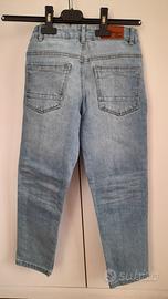 Pantalone di qualità, marca Republic of Denim (OVS). Età indicativa 8-9 anni (130-138 cm circa), slim fit. Regolabile in vita con elastico a bottoni incorporato. Colore blu denim. Tessuto in cotone. Mai usati. Possibilità di abbinamento con altri pantaloni da altri annunci per spedizione in unico lotto.