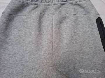 Realizzati in morbido misto cotone fleece tech che assicura comfort e leggerezza, taglia L (147-158cm, 12-13 anni), vestibilità standard, colore grigio chiaro melange, materiale 57% cotone, 43% poliestere, chiusura a stringa, iconico logo Swoosh sulla coscia, fascia elastica in vita a 3 canali con coulisse e chiusura a stringa e polsino elastico sulle caviglie, tasche oblique e tasca extra con zip posizionata sul fianco destro. Altrove in ottimo stato, presenta sulla parte posteriore qualche segno di tessuto usurato. Pagati in negozio € 69,90.