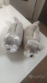 Morbide pantofole a forma di cane per bambino. - Colore grigio con dettagli bianchi. - Materiale peluche. - 10 euro al paio