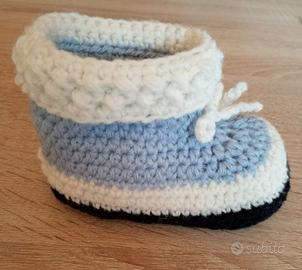 Babucce per bimbo, lana, fatte a mano, misura della pianta del piede 12x6 cm circa, abbastanza elastiche.