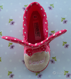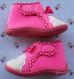 Graziose, morbide e calde con chiusure laterali a strappo e suola in gomma. Adatte sia per interno che per esterno. Misura 21-22. In scatola originale intatta.