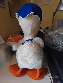 vendo papera in pelouche Trudy anni 70 con foulard in pannolenci blu e pois bianchi (alcuni mancanti). misura altezza cm 45 larghezza dalla pancia alla coda cm 25.