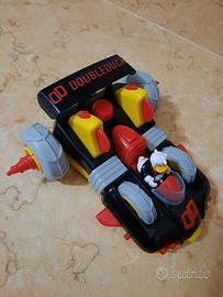 Gadget Paperinik alla guida. Divertente veicolo colorato di modernariato con ... sistemi di difesa!