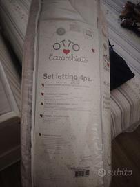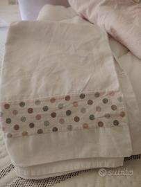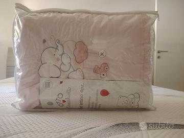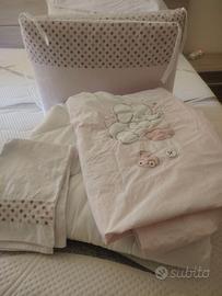 Set lettino coordinato paracolpi bambina con trapuntino. Ottime condizioni usato solo i primi 6 mesi invernali. 1 copri piumino 1 piumotto in microfibra 1 federa 1 Paracolpi