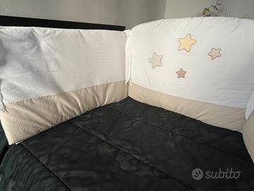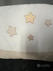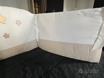 Paracolpi Lettino Erbesi, colori bianco e beige, adatti sia a bimbo che a bimba. Usato poco in ottime condizioni, lavato in lavanderia.