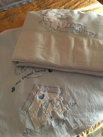 Vendo paracolpi prenatal color azzurro con cagnolino, compreso anche copriletto in cotone.