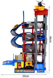 Il set comprende un parcheggio con ascensore e un autolavaggio oltre a dissuasori, barriere e segnaletica stradale. Sono incluse anche 4 automobili e un elicottero.