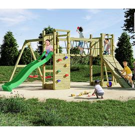Il parco giochi da giardino in legno Fungoo Maxi Exposure è un'oasi di divertimento pensata per i più piccoli, completa di una vasta gamma di attività e funzionalità.Una zona sabbiosa è disponibile per gli appassionati di costruzioni e giochi creativi, mentre la parete per arrampicata con sei rocce offre una sfida fisica e mentale per i più avventurosi.Il tavolo da picnic permette di godersi piacevoli momenti all'aria aperta durante le pause dai giochi attivi. - Dimensioni assemblato: 525 x 398 x h210cm - Dimensione piattaforma: 70x 70cm - Altezza piattaforma da terra: 125 cm - Lunghezza scivolo: 2,2 m - Numero massimo di bambini: 9 - Peso massimo utilizzatore: 50 kg - Adatto a bambini dai 3 ai 10 anni. I nostri giochi sono concepiti per essere utilizzati ad uso privato e non pubblico. Cosa significa? Per suolo privato si intende un’area di gioco sorvegliata da adulti, per esempio un giardino privato, un condominio o una scuola. Per suolo pubblico si intende invece un'area aperta al pubblico e non sorvegliata (in questo caso i giochi richiedono standard di sicurezza rigorosi e certificazioni conformi alla legislazione nazionale). l montaggio è semplice ed intuitivo. Il set include gli strumenti necessari e le istruzioni dettagliate. Consigliamo il montaggio in 2 persone. Tempo di montaggio: 7 ore. Contenuto del kit: • uno scivolo lungo 2,2 metri • 10 ancoraggi per fissare il parco giochi al terreno • impugnature e scudi protettivi • un set di legno • rampa con corda da arrampicata • areadi giochi con sabbia • parete per arrampicata con 6 rocce • tavolo da picnic • un set di attrezzi per il montaggio • un manuale di montaggio passo dopo passo • connettore metallico per la costruzione dell'altalena • 2 sedili piatti ROSSI con ganci e corde • scala a pioli metallica • corda con connettori per la costruzione del ponte Il legno impregnato resistente alla luce solare e all'umidità, completamente sicuro per i bambini. Normativa di sicurezza europea