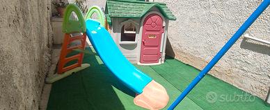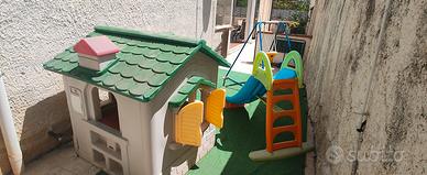 Come da foto casetta max,scivolo feber,altalena, casa misura: 145 x 135 x 140 scivolo: 190 x 120(h) casetta porta da sistemare.
