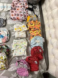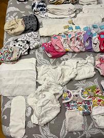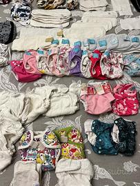 Vendo parco pannolini utilizzato 8 mesi. -> Monster Diaspers (comprati io nuovi): - 2 ibridi con tasca assorbente e inserto lungo con bottone + inserto in canapa dentro la tasca, fantasia meduse e fantasia bianca con piume blu. 30 euro - 1 pocket tasca in bambù con 2 inserti, fantasia rose rosa. 15 euro - 3 Monsterflat notturni con inserti fitted, fantasia 2 Alice nel paese delle meraviglie e 1 arcobaleno. 48 euro - preflat in wafflejersey bianco con animali. 16 euro - cover lana grigia 17 euro -> 7 pop in Ai2 rossi, celeste, fantasia arancione, giallo ocra 70 euro -> cover: -rumparooz bianca con pois neri 9 euro -Cipiwipi bianca in lana 16 euro - fantasia cielo 5 euro -> Chiarlie Banana: 9 pocket con 7 inserti small in microfibra, 2 m/L in canapa, 8 m/L microfibra 117 € 8 inserti fatti su misura da Monster Diaspers per garantire migliore assorbenza e minore ingombro ( 5 euro). -> fitted: - 5 popolini 50 euro - littlelamb 10 euro - 1 thirshes stay dry Ai0 nero con fiori, difetto al bottone 5 euro - blueberry Diaspers Ai0 avocado 5 euro - 2 magabi verde acqua con meduse e verde bosco con leoni. 20 euro - 2 petit lulu’ fantasia con i fiori e fantasia con i gatti 16 euro -> 1 lighthouse kids Ai0 beige con lune con ulteriore inserto comprato a parte 18 euro. -> saycheese Ai0 5 euro -> jooppi a righe b/n super slim pocket 10 euro -> alvababy pocket rosa con maialini 5 euro -> Grovia one Ai2 fantasia rosa geometrica 15 euro -> bee nero con cavallini Ai0 con un bottone difettato ma metto insieme i bottoni nuovi che mi ero procurata per aggiustarlo. 5 euro -> prefold Pepsu fantasia celeste con bimba 9 euro Sconto del 20% per chi acquista intero parco e in regalo: 8 veline in microfibra, 9 veline nere in coolmax, 2 veline in evolon, 1 anavy Ai2 fantasia mele usato come cover, cover bianca con pois marroni, 3 rotoli di veline usa e getta, ganci per prefold.