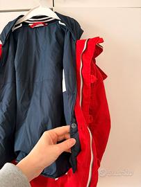 Si può usare parka esterno rosso, gilet interno blu oppure insieme per avere il parka più pesante: ci sono bottoni che uniscono le due giacche.