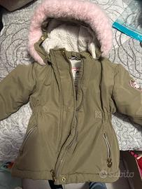Parka bimba verde con pelliccietra rosa…. Molto carino