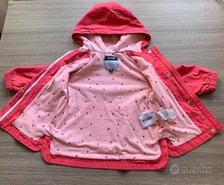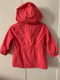 VENDO Giacca leggera di KIABI modello parka colore rosa scuro, perfetta per la mezza stagione. Fodera interna con stampa a cuoricini, 100% cotone. Cappuccio con fodera interna sempre in cotone, due taschine sul davanti, chiusura con zip e bottoni a pressione. Taglia in etichetta: 18 mesi (77-82 cm). Usata pochissimo, condizioni perfette pari al nuovo. Già ecolavata. Consegna a mano a Reggio Emilia o spedizione con corriere espresso tracciabile a carico dell'acquirente (5 Euro).