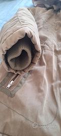 Parka imbottito come piumino verde militare per bambino 4 anni. Sottolineo che il colore è tutto uniformemente verde militare come la fodera interna ma il cambio materiale ( esterno è impermeabile) causa nella foto questo rifkesso marrone.