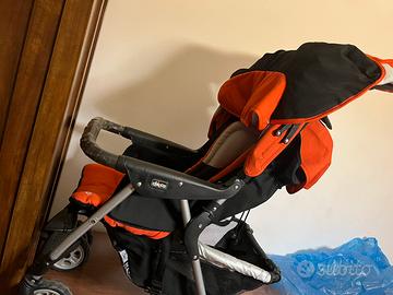 Due passeggini blu e arancione