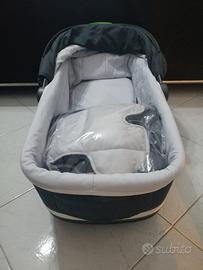 Passeggino trio inglesina in condizioni ottime quasi nuovo compreso di tutti gli accessori alcuni ancora chiusi mai usati. Compreso di ovetto, cesta e passeggino . Che si può mettere o fronte mamma o fronte strada. In colore grigio jeans con perfili verde. Con tutte le cappotte.