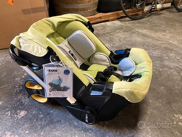 Sistema di viaggio che ti permette di passare dal seggiolino auto al passeggino in pochi secondi. Soddisfa i più rigidi standard di sicurezza per seggiolini auto e passeggini ed è certificato R129. Perfetto per i genitori sempre in movimento! Semplicissimo da utilizzare, le ruote scendono con un semplice movimento. Omologato per l’utilizzo in auto da 0 a 13 kg (dalla nascita fino ai 15 mesi). Facile da adattare in base all’altezza del bambino grazie al poggiatesta regolabile. Il design elegante e funzionale del Doona rende ogni spostamento un piacere, sia che si tratti di viaggi in auto, mezzi pubblici o passeggiate in città. Le ruote ad alta resistenza sono progettate per passeggiate quotidiane massimizzando il comfort per il tuo piccolo, mentre il maniglione rivestito in finta pelle e il design allungato assicurano facilità d'uso anche per i genitori. Creato in stretta collaborazione con esperti medici e ingegneri, Doona garantisce un corretto sostegno al corpo del bambino, posizionandolo in modo ergonomico. L'inserto per neonati è caratterizzato da un design praticamente piatto, offre supporto sia alla parte superiore che a quella inferiore della schiena, assicurando un allineamento ergonomico del collo e della schiena. Colore verde.