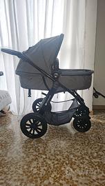 passeggino 3 in 1 per neonati dalla nascita fino a 22 kg ; sedile 2 in 1: trasforma la carrozzina in passeggino in pochi secondi; ha un'ammortizzazione su tutte e 4 le ruote (pompata, in gomma). Ha una maniglia parentale regolabile (5 posizioni) e un comodo freno, si puo usare in direzione fronte mamma o fronte mondo, capuccio estensibile e finestrina di contatto genitori-figlio.