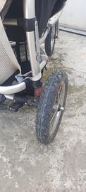 passeggino 3 ruote con ammortizzatori, pompetta per gonfiare le gomme, 2 retine per oggetti, 2 ganci per borse e freno. no spedizione