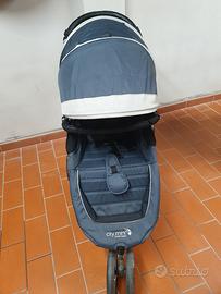 Passeggino Baby Jogger City Mini a 3 ruote con parapioggia.
