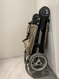 Passeggino tenuto molto bene, lavato e disinfettato... leggero, molto comodo, facile da usare, anche perché i nonni, si chiude e si riapre molto facilmente… È un passeggino abbastanza stretto da usare tranquillamente sui marciapiedi in città, comodo per passeggiate anche nei centri commerciali, l’altezza la puoi regolare da seduto a fino a sdraiato, ancora meglio per l’estate quando è sdraiato e il bambino dorme si può aprire la parte chiusa sopra la testa, resta la rete per arieggiare l’interno… Tutto il materiale è fatto da protezione solare UV, protezione 50, ci sta tranquillamente anche nella Fiat 500, se si vuole, si staccano e si attaccano facilmente le 3 ruote, la ruota davanti gira a 360 gradi.