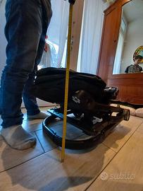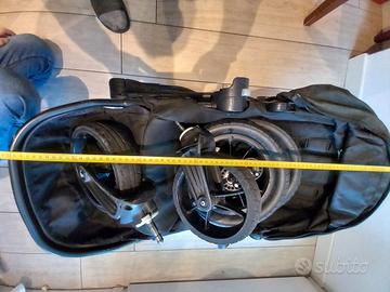 passeggino molto robusto dotato di 4 ruote rimovibili, si chiude facilmente adatto per guadagnare spazio anche su bagagliai di piccole dimensioni. Accessoriato con pedana aggiuntiva per trasportare un fratellino in posizione eretta e di telo antipioggia. Presente qualche graffio sul bordo anteriore del telaio ma in buone condizioni generali.
