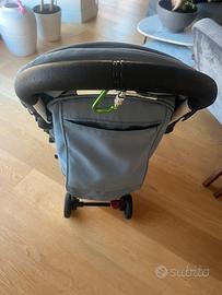Passeggino Babyzen YoYo ultraleggero con qualche segno di usura. Una delle ruote gira con più difficoltà, ma funziona. Si chiude diventando estremamente sottile, utile anche per essere trasportato nei viaggi in aereo.