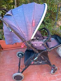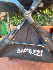 passeggino marca Baciuzzi effetto jeans . completo di kit fodera gambe ,parapioggia, zanzariera. tessuto . il passeggino è leggermente scolorito nella piega del tettuccio ma per il resto è in ottime condizioni. ritiro a mano