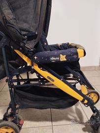 Passeggino bimbo completo di ovetto per auto della Chicco, modello Chicco Espace, munito di tettuccio e capottino per pioggia (evidenziato con segno rosso in una foto), colore blu e giallo. Ottime condizioni.