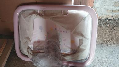 Salve a tt vendo da come potete vedere in foto passeggino, box, e sediolone in più ho anche altro passeggino che regalo . Il box di colore rosa è solo un po' strappata la rete ma è tenuto bene.