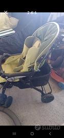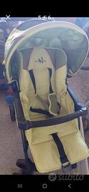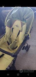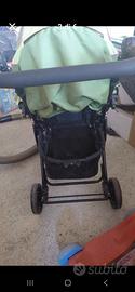 passeggino verde chiaro con cesto rigido posteriore e cappottina