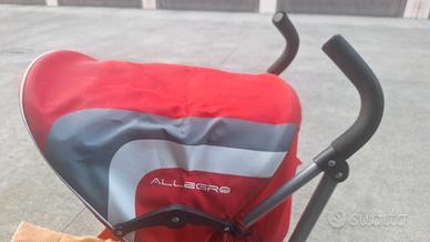 Passeggino con chiusura ad ombrello in metallo leggero.
